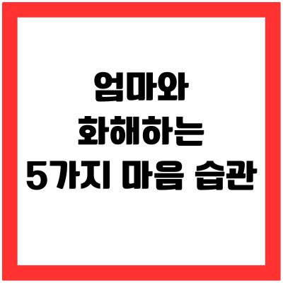 이번 글에서는 엄마와의 갈등을 부드럽게 풀고, 나 자신까지 치유하는 6가지 핵심 마음 습관을 소개합니다.